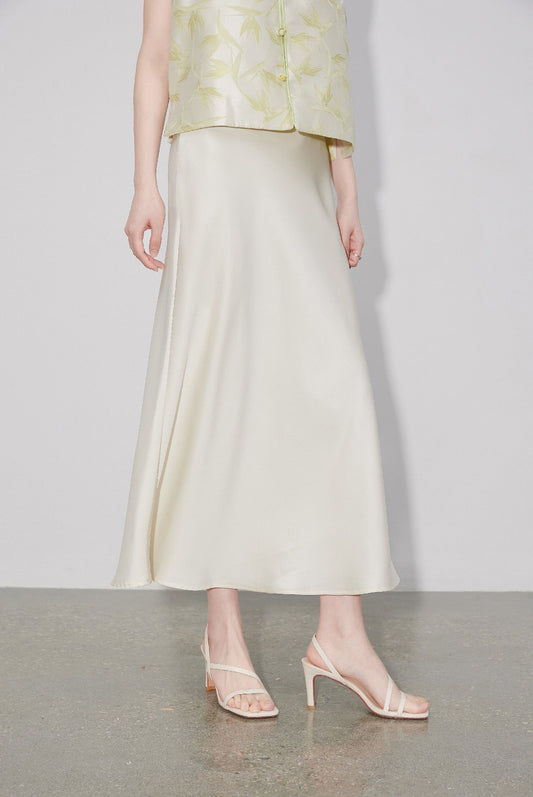 Zhou Wrinkle Satin Bias Cut Maxi Skirt