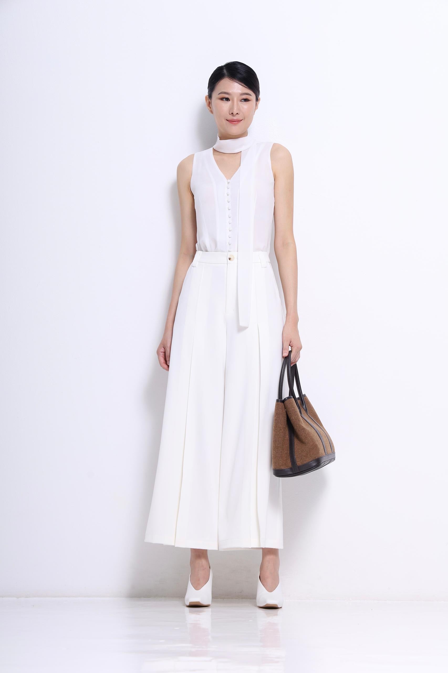 The Becca V-Neck Chiffon Blouse combines effortless elegance with practical design. Crafted from light, iron-free tencel fabric, it features a flattering V-neck and button-down front for a refined look. The included matching neck tie doubles as a chic waist belt, offering versatile styling options. Perfect for busy Monday mornings, this blouse brings a simple, sophisticated touch to your wardrobe without fuss.