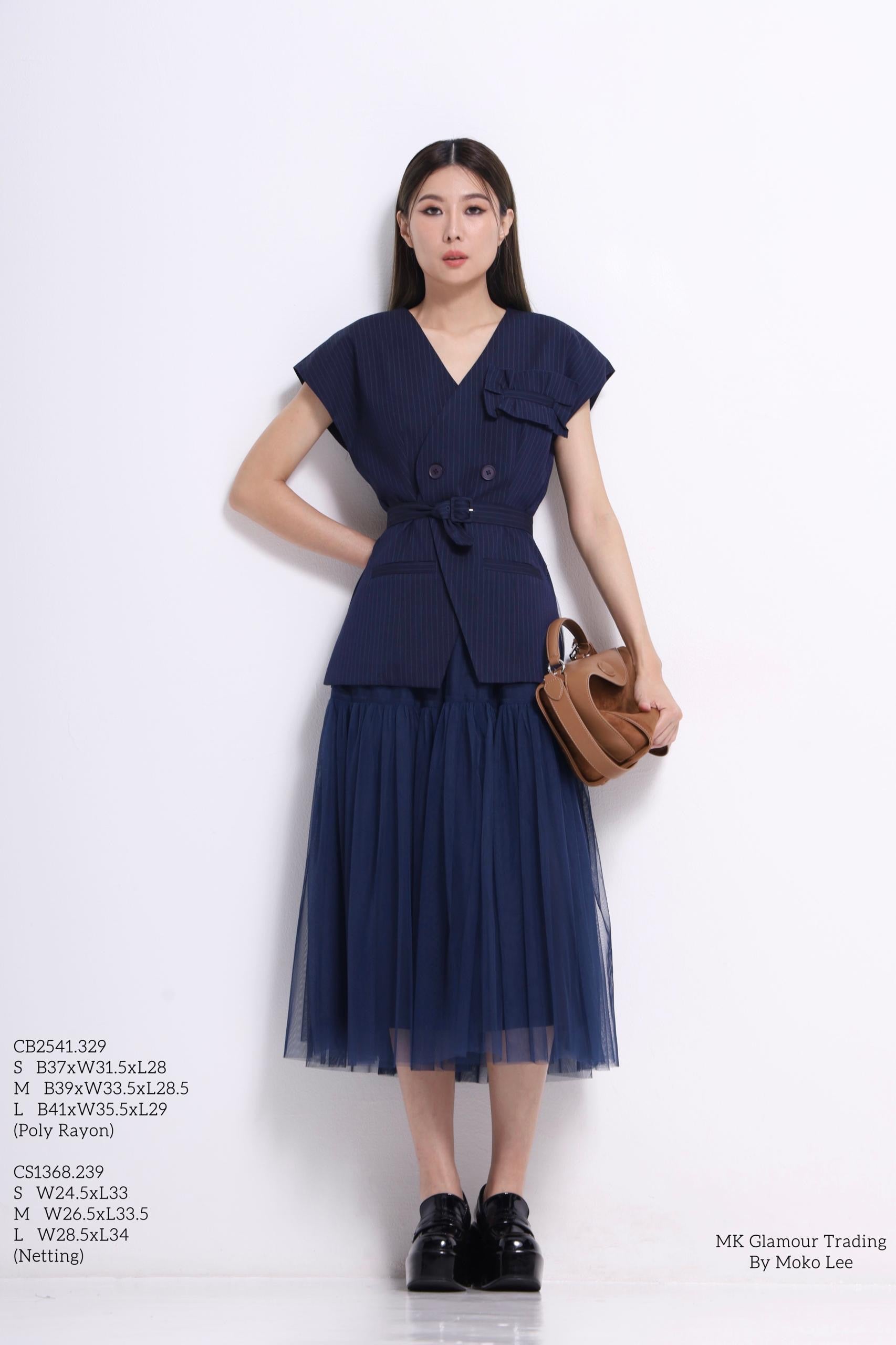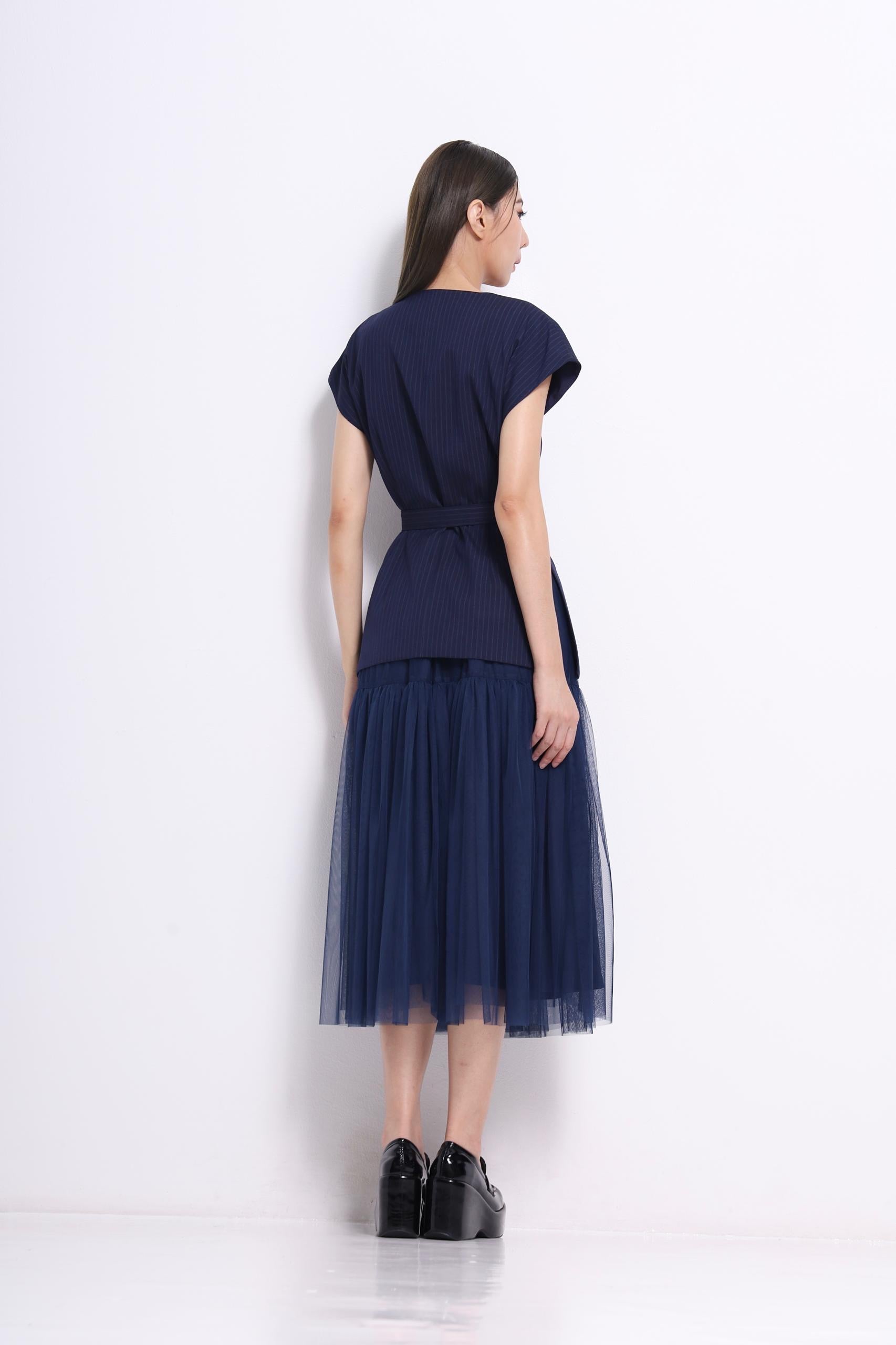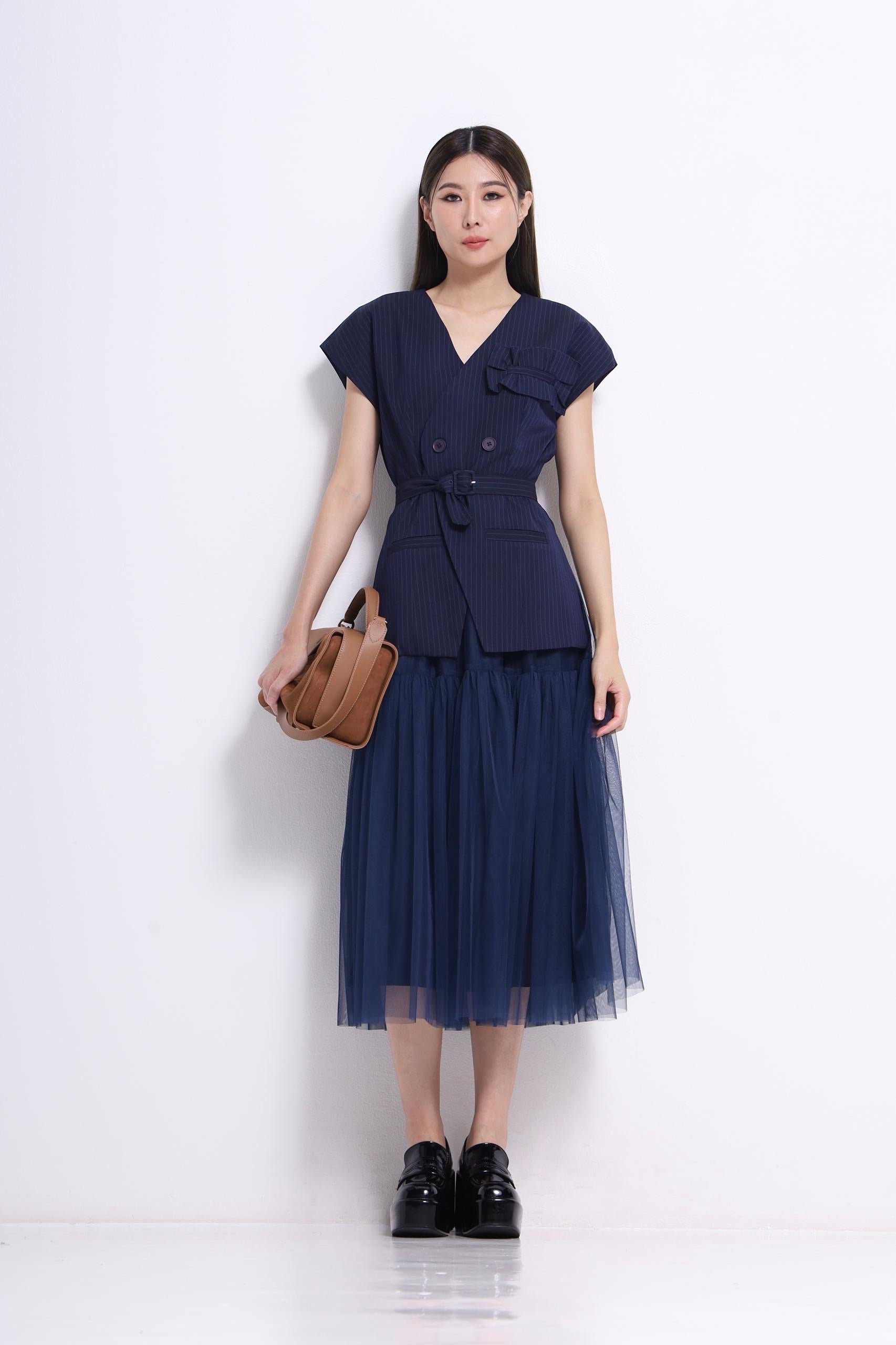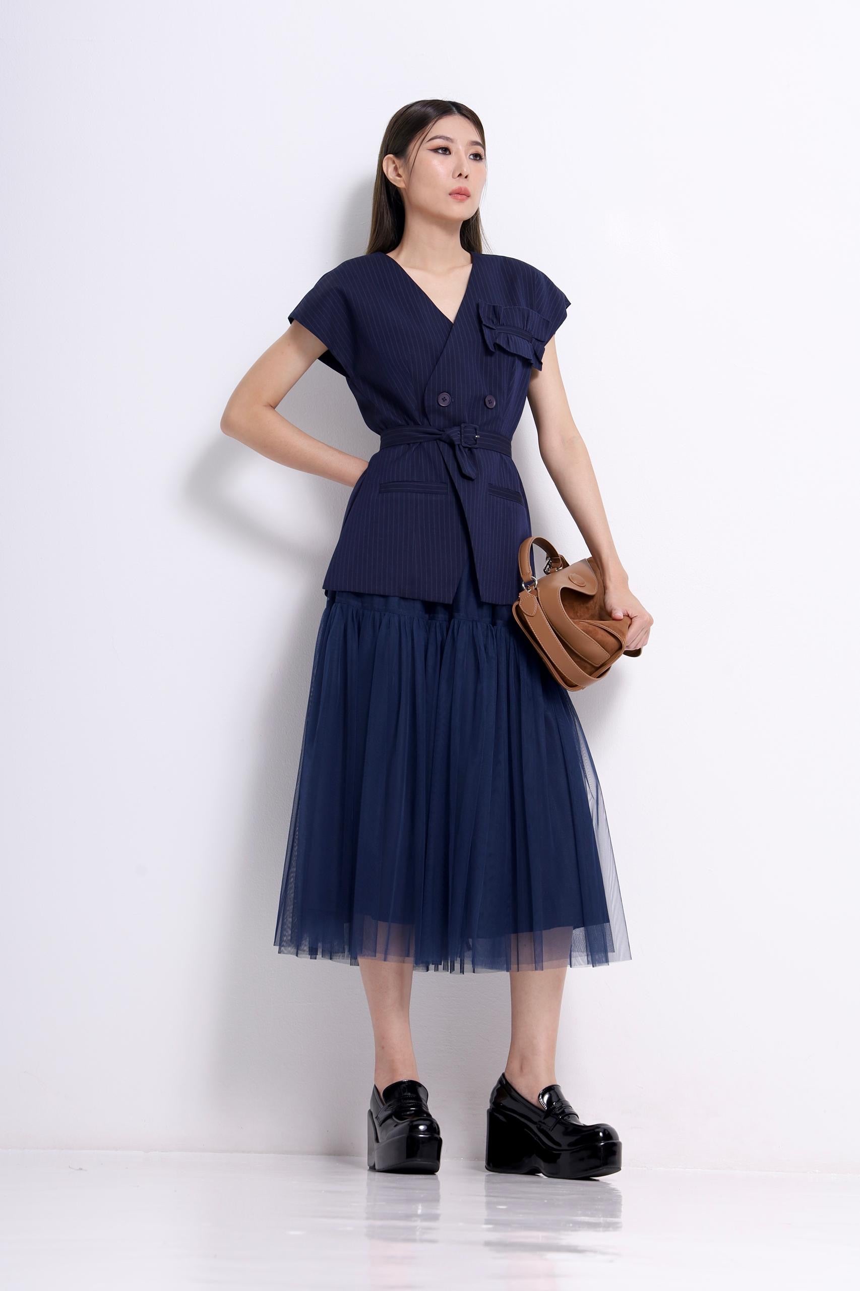 The Ellina Oversized Double Breasted Vest is your new go-to for playful layering. With its roomy fit and belted silhouette, it effortlessly blends comfort and style. Wear it as a vest, jacket, or top—perfect for the office with wide-legged trousers or paired with the flirty Ellina Tulle Skirt for a fun, chic look.