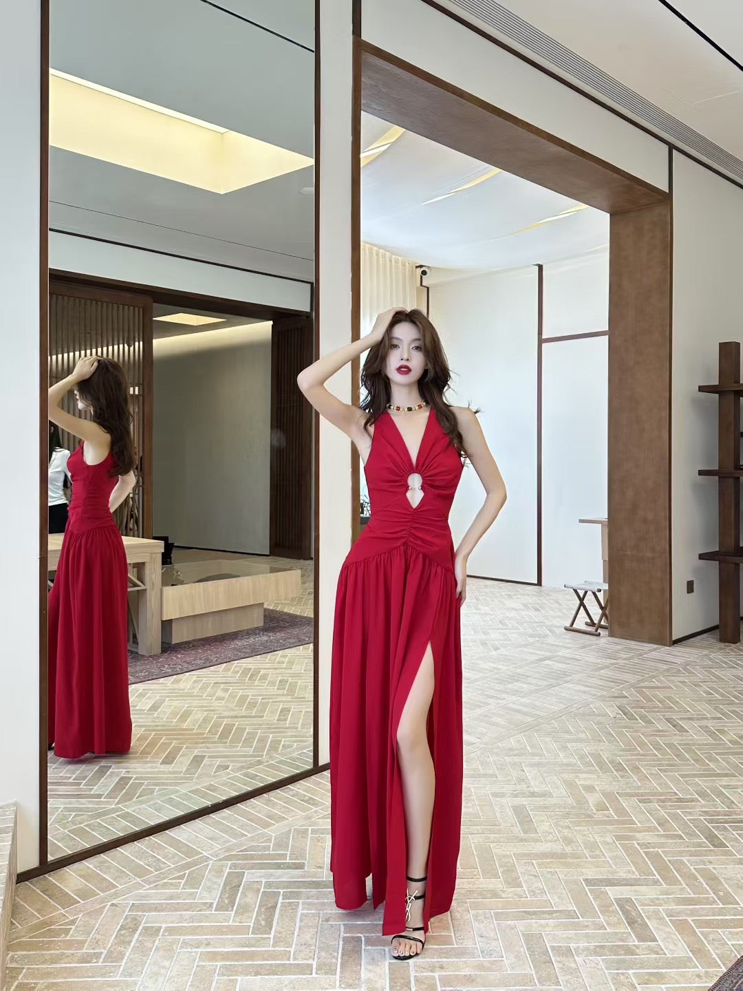 Elevate your evening with the Joey Ring Cutout Dress, a sophisticated maxi that effortlessly blends flirtation and elegance. Featuring a tasteful V-neckline with a subtle hint of cleavage, a chic ring detail at the bodice, and a daring side slit, this dress flows gracefully with every step, perfect for making a stunning entrance.