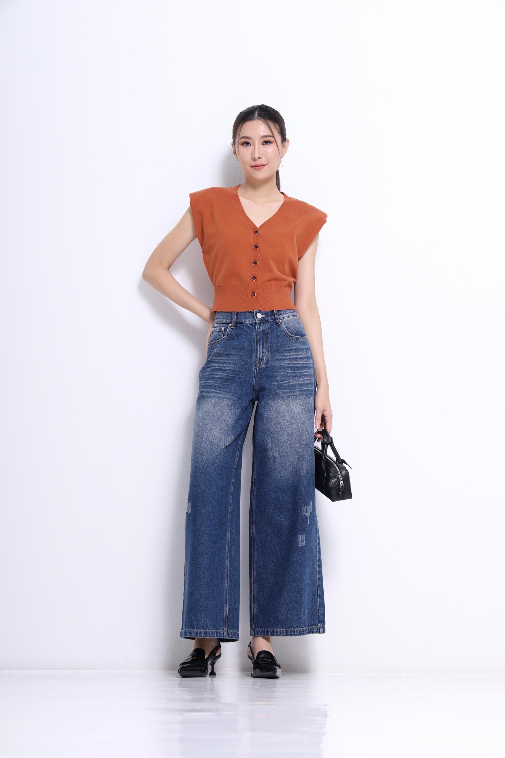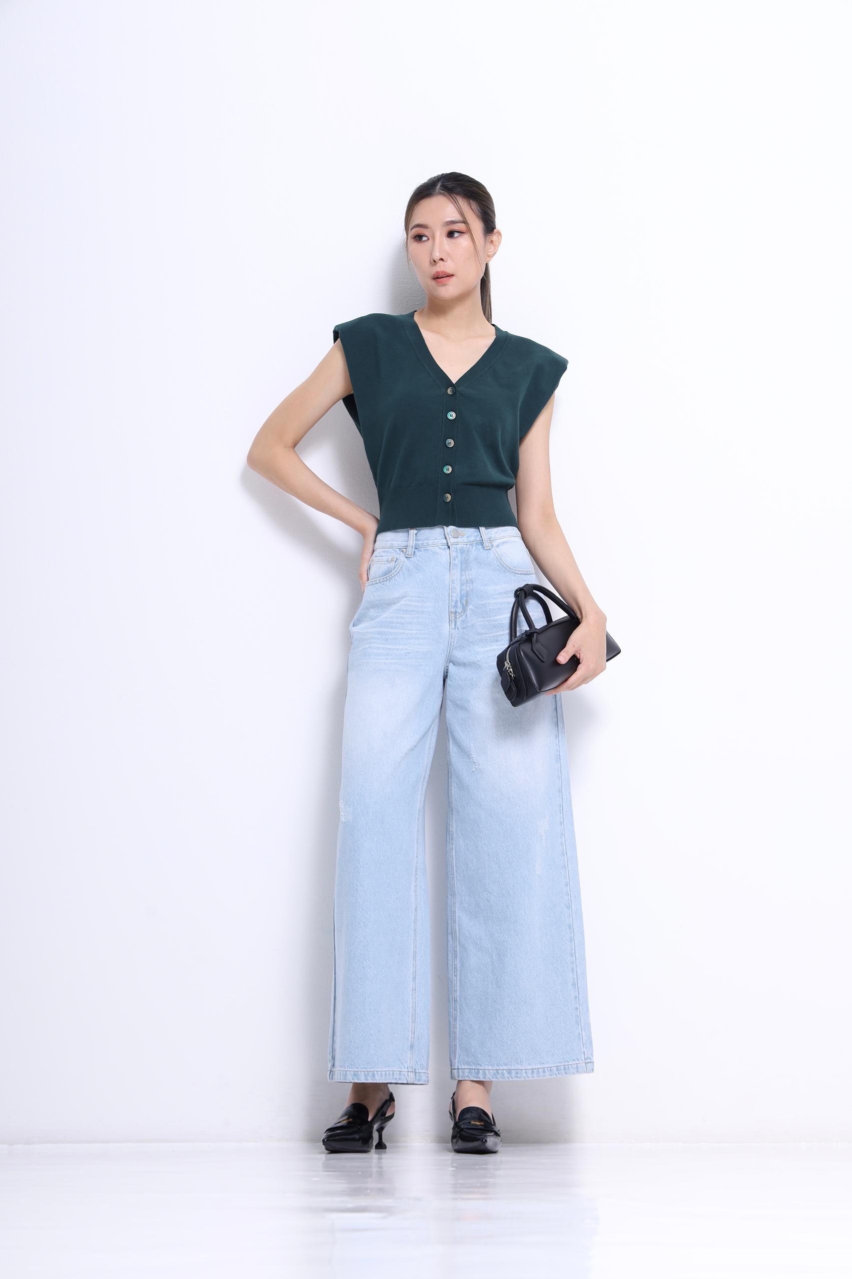 Stay cool and relaxed in the Josie V-Neck Cap Sleeve Knit. This comfy cropped knitwear features a flattering V-neckline and button-down front, perfectly blending smart casual style with easygoing comfort. Whether you're dressing up or keeping it laid-back, Josie adds a playful touch to your everyday look.