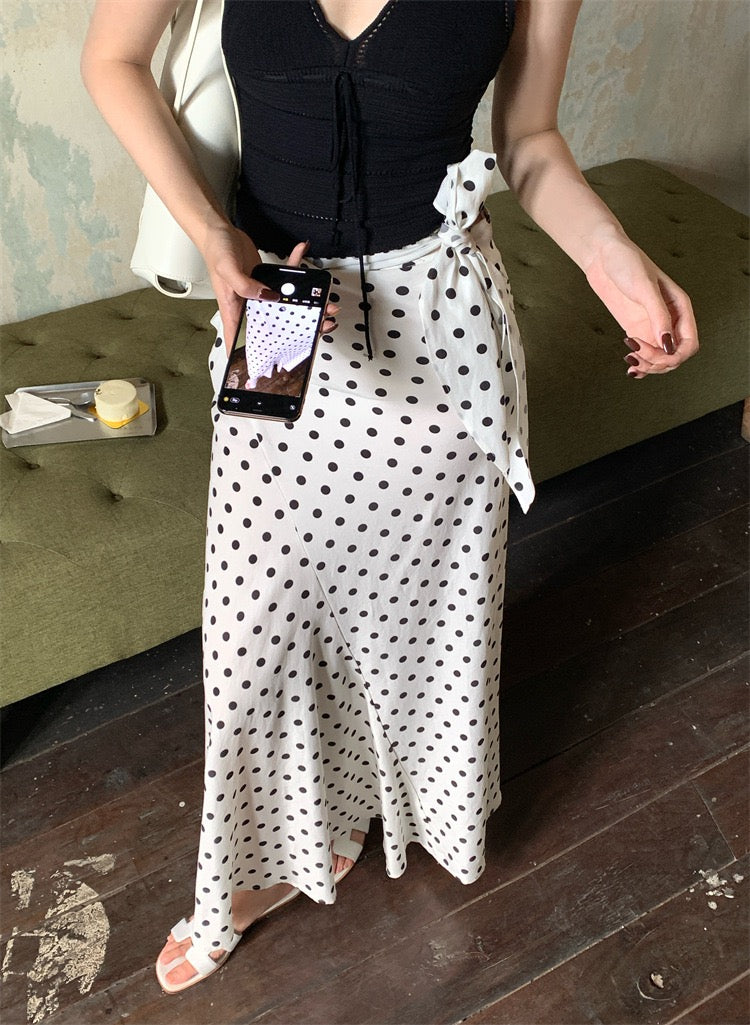 Make a splash with the Kylie Mermaid Wrap Skirt! This vintage-inspired skirt features a playful polka dot design and a mermaid-style wrap, perfect for a day at the beach or a night out on the town. Dive into style with this unique and fun skirt!