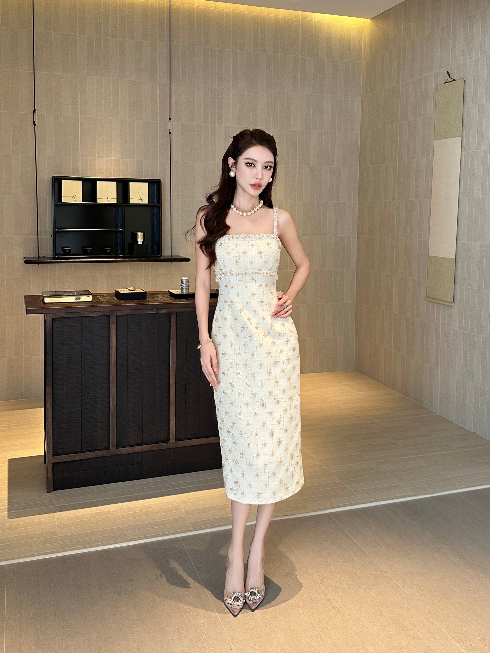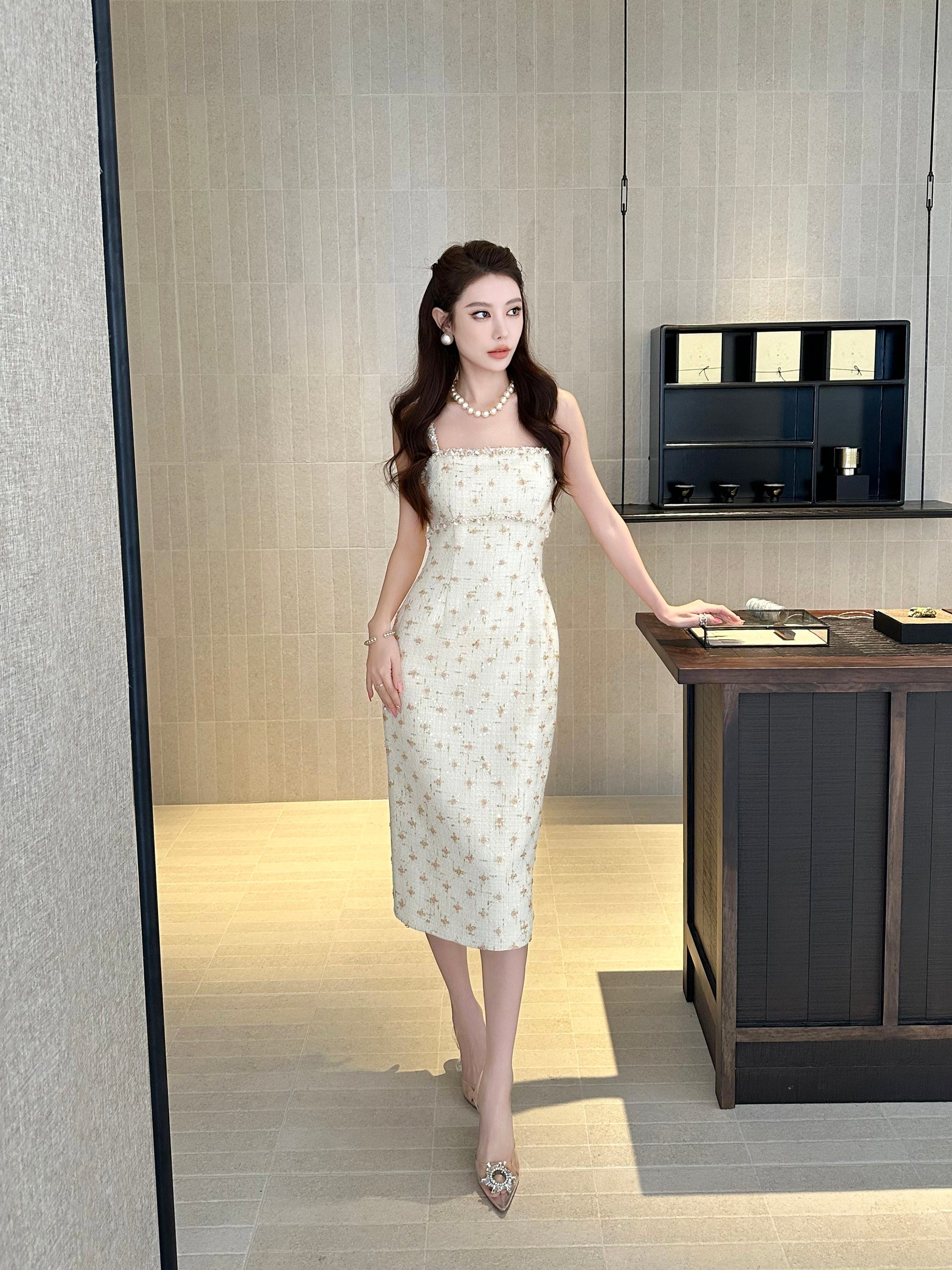 Crafted from luxurious tweed, the Layla Tweed Sequin Midi Dress features delicate floral embroidery and mini stone straps that highlight its intricate details. Falling to a refined midi length, this elegant dress blends timeless style with sophisticated glamour, perfect for making a graceful statement at any event.