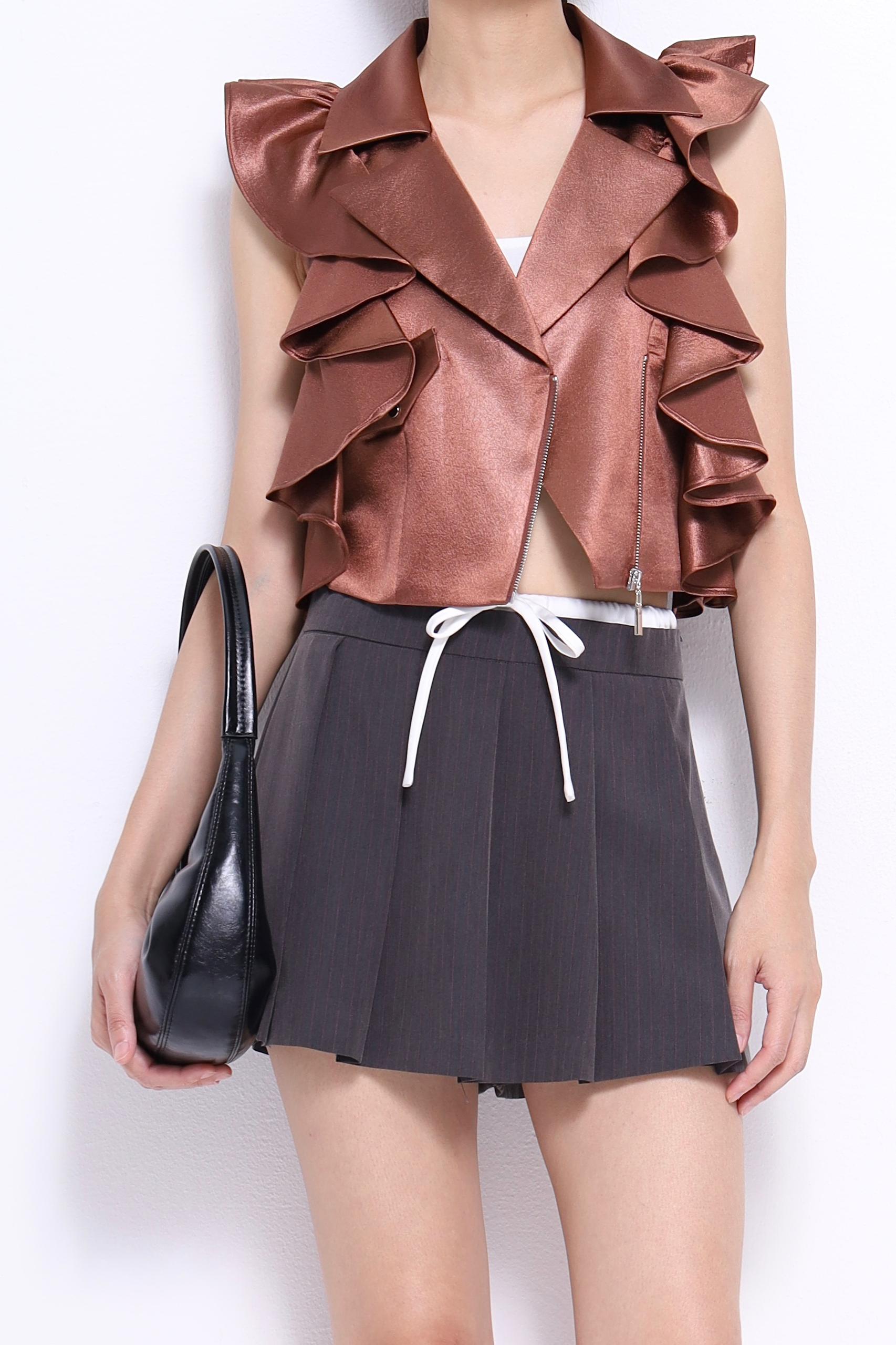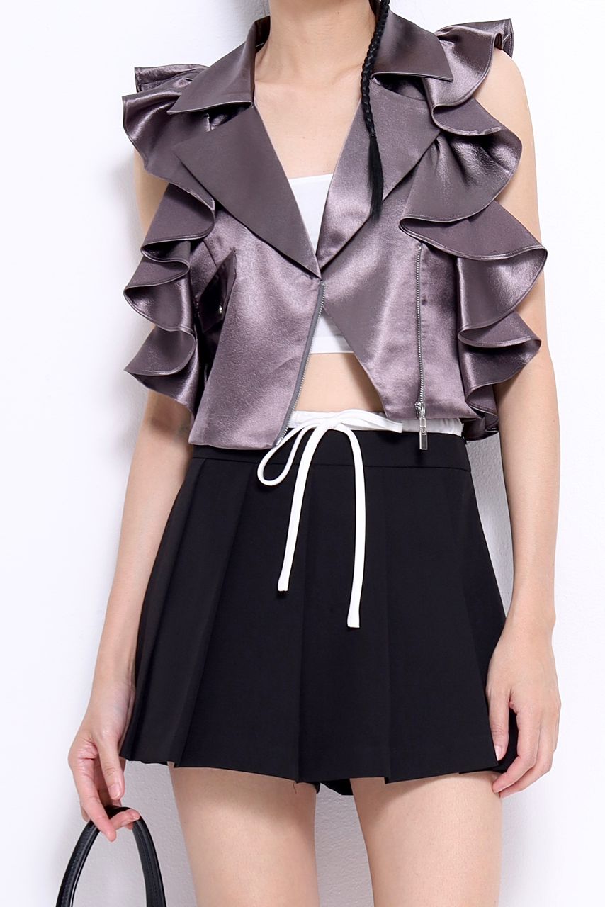 Experience the ultimate comfort and style with our Mia Satin Biker Vest. Made with our exclusive satin fabric, it offers unparalleled breathability even in the hottest weather. The exaggerated ruffles, V-neckline, and relaxed silhouette will have you looking your best. Elevate your look with the luxurious satin fabric that adds a modern sporty twist to the silhouette.