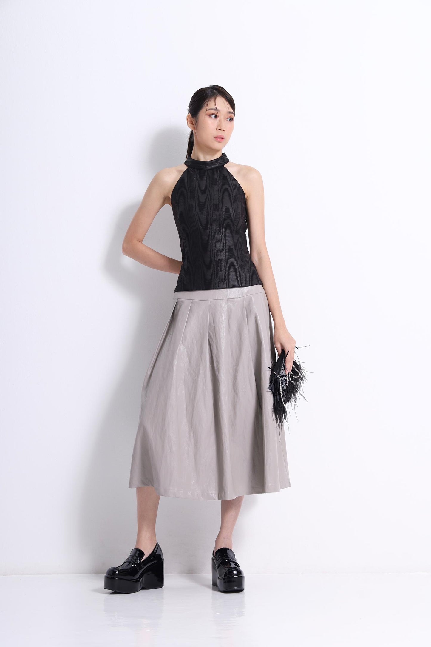 Unleash your inner cool girl with our Mina Faux Leather Halter Neck Top. This sexy yet edgy top features a cut in halter neckline and a fitted, slightly aline silhouette. Made from our signature faux leather fabric, dress it up or down for any occasion. Be ready to stand out in this unique and versatile top.