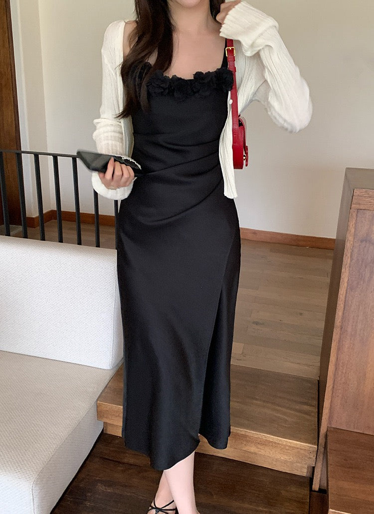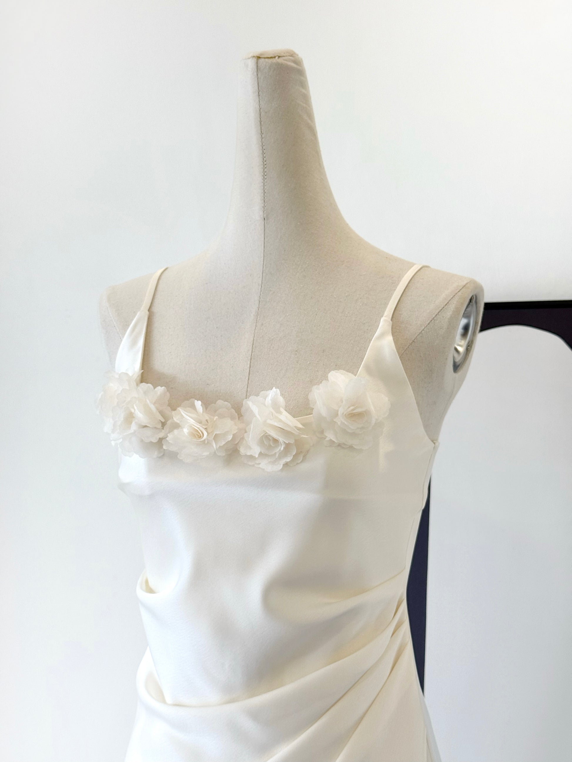 Penelope Satin Dress with Flower Brooch