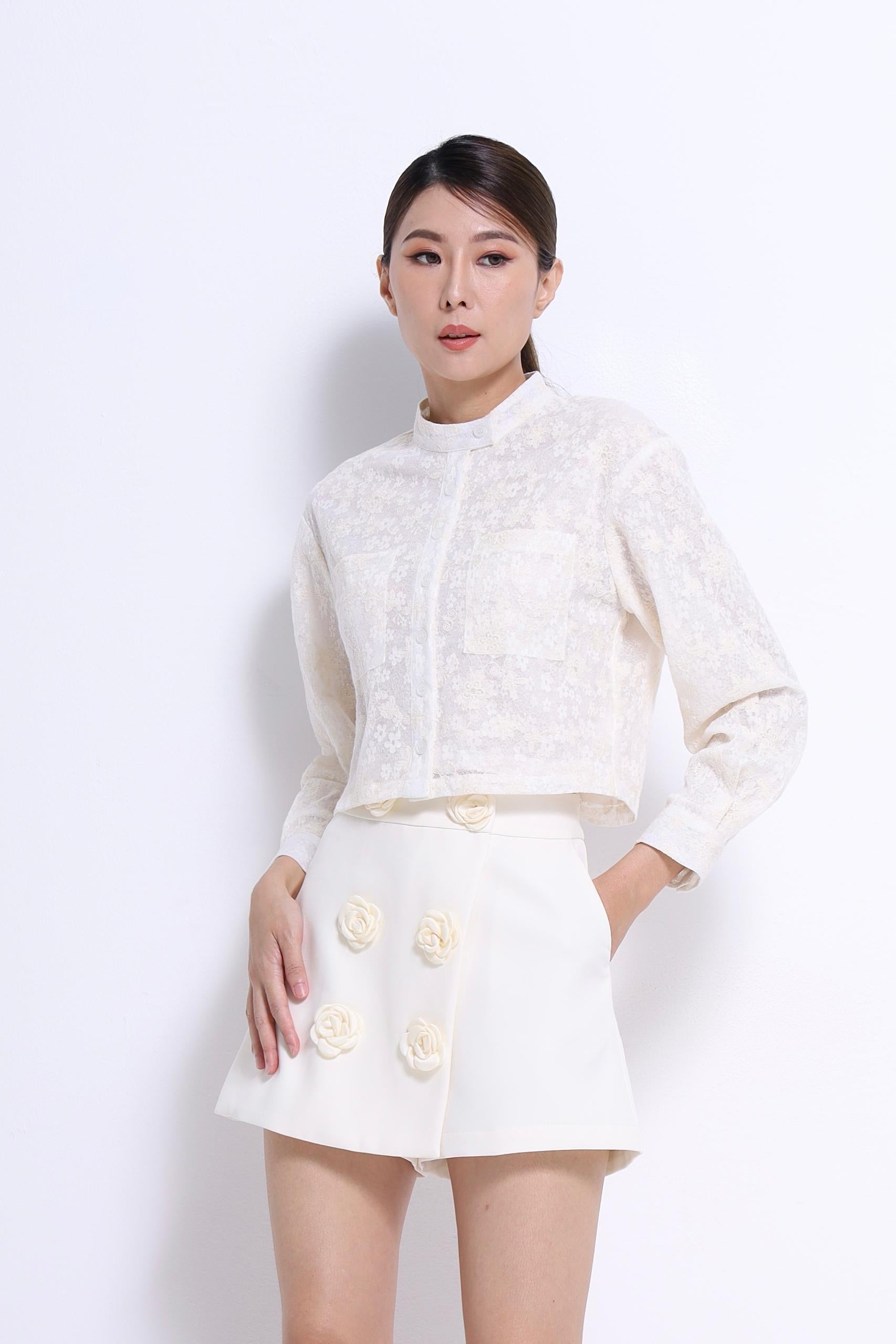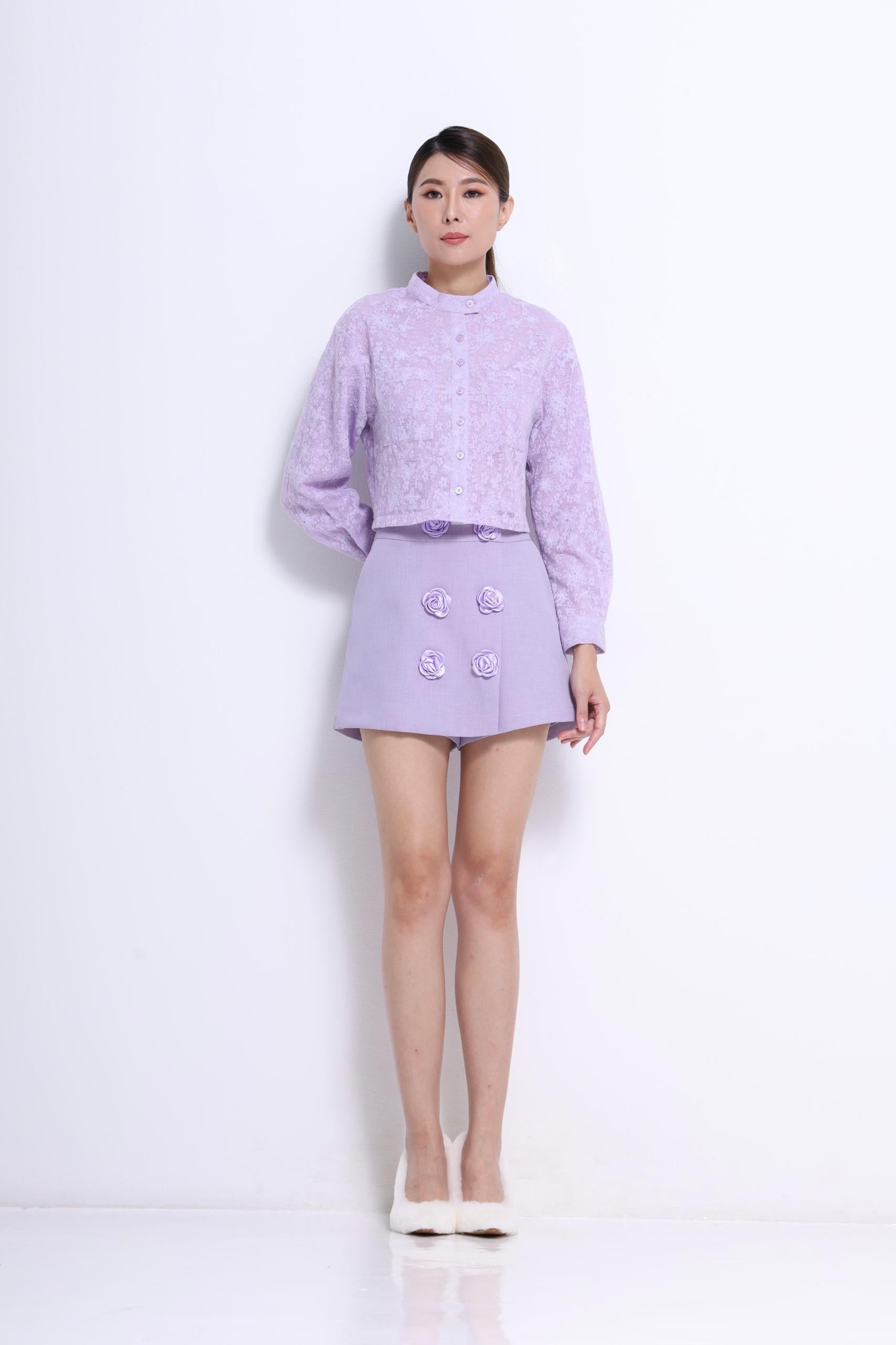 Elevate your wardrobe with the Rosalie Floral A-line Skorts, featuring a flattering silhouette enhanced by delicate 3D rose embellishments on the front flap. This unique design adds a touch of elegance and charm, effortlessly transforming any outfit.