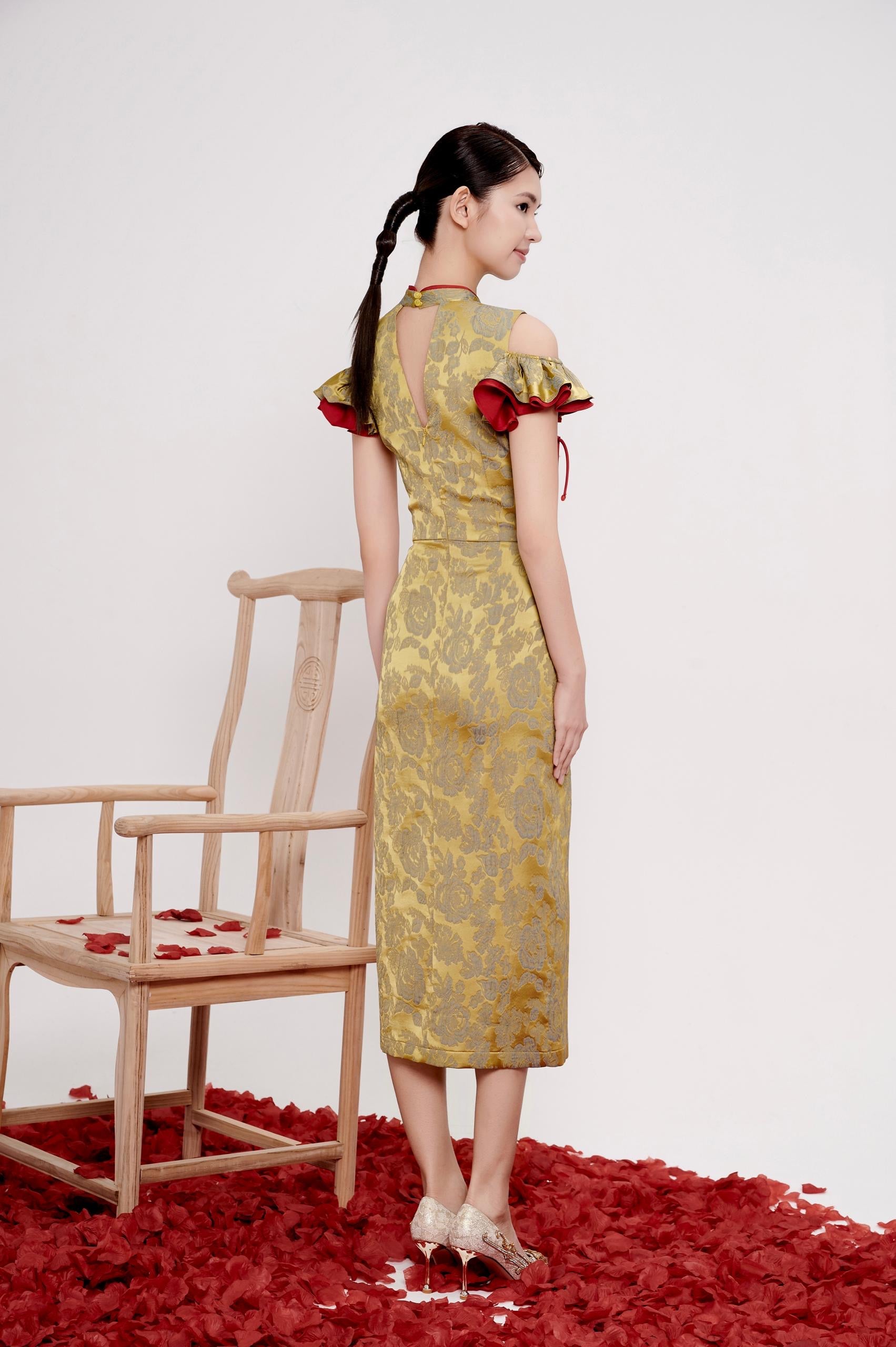 Slip into elegance with our Ru Bi Orient Ruffle Dress—a stunning qipao that blends timeless charm with modern comfort. Crafted from luxurious silk-like brocade, this beauty practically styles itself with zero-ironing magic.